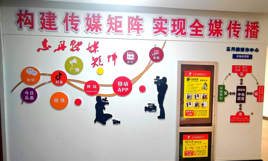 中心拥有一个电视频道(志丹电视台)、一个广播频率(志丹广播电台)、一个移动客户端(“爱志丹”)、一个学习平台(“学习强国”志丹平台)、开设一个微信公众号和视频号、一个微博官方账号、一个抖音账号,形成了台、网、频、微、端为一体的全媒体传播矩阵。