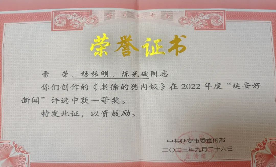 (三)获奖情况。志丹县融媒体中心杨振明、陈光斌等创作的电视专题《老徐的猪肉饭》荣获“陕西新闻奖”通讯二等奖、“延安好新闻”一等奖;志丹县融媒体中心马华权、牛小梅、陈光斌等创作的《让每个孩子都上好学》荣获“延安好新闻奖”二等奖;志丹县融媒体中心马华权、晋延龙等创作的《不当老板当农民》荣获“延安好新闻奖”二等奖。