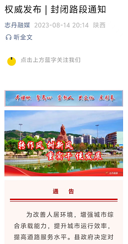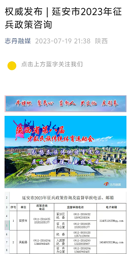 微信公众平台设立【权威发布】板块,播发《封闭道路通知》《延安市2023年征兵政策咨询》