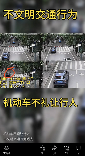 微信公众平台视频号开设【曝光台】曝光全县不文明交通行为