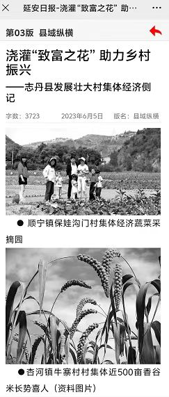 《延安日报》播发《踏浪前行风正劲、踔厉奋发争朝夕——志丹县2022年经济社会发展回眸》《浇灌“致富之花”、助力乡村振兴——志丹县发展壮大村集体经济侧记》
