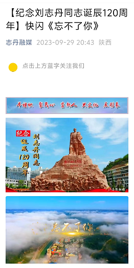【纪念刘志丹同志诞辰120周年】播发《刘志丹习仲勋携手共建陕甘根据地》、快闪《忘不了你》
