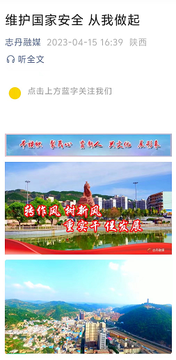 (一)融媒体矩阵。致力于持续实施“移动优先”战略,构建“融媒+”体系,深化服务能力。按照“综合服务平台、信息枢纽中心”的功能定位,建设综合服务平台和社区信息枢纽,持续推进融媒体可持续发展。重点打造“爱志丹”客户端,每日发布原创优质新闻,倾力打造“爆款”。同时,整合党政部门信息资源,融入地方政务、公积金查询、医疗教育、科普公益等公共服务项目,打造出志丹涵盖最广、业务最强的“城市运营服务商”。“志丹融媒”微信公众号、“爱志丹”APP、抖音、微博等“两微一端”官方平台开通以来,呈现频次提高、范围扩大、效果提升的良好态势。“志丹融媒”微信公众号累计关注人数34713人,“爱志丹”APP累计下载49805人次。